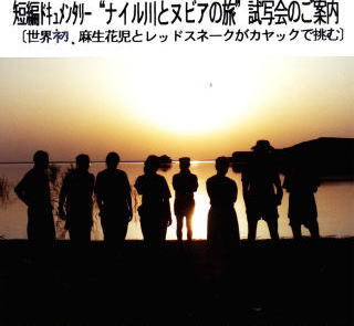 ナイル川(アフリカ) スーダンKhartoumからエジプト・カイロ区間を芸術家のグループを率いてカヌーで下る 1993 9月 短編ドキュメンタリー映画制作 「ナイル川とヌビアの旅」 企画:KAJI ASO STUDIO INC. 麻生花児東京ステーション 現像・編集協力 イマジカ 録音:福島音響スタジオ 音楽:矢込 弘明 撮影協力:在日スーダン共和国大使館 |